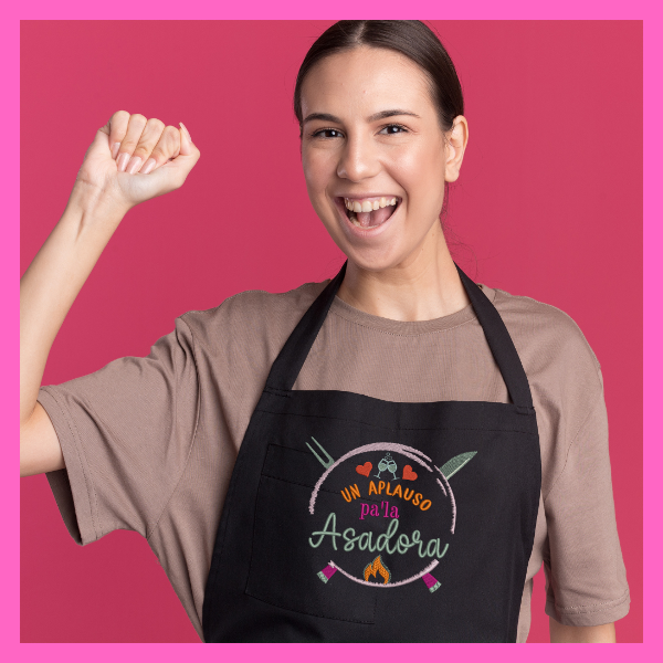 Mamá asadora un aplauso frase matriz de bordado dia de la madre 14cm